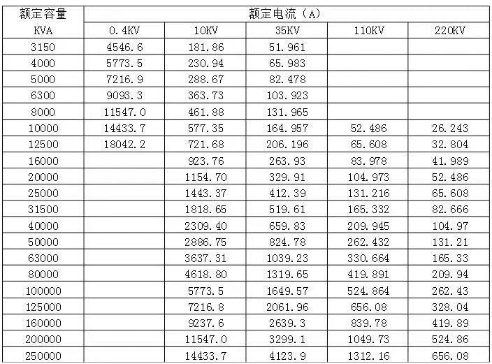 在日常工作中,有些电工只涉及一两种电压等级的变压器额定电流的计算。将 以上口诀简化,则可推导出计算各电压等级侧额定电流的口诀:容量系数相乘求。已知变压器容量,速算其一、二次保护熔断体(俗称保险丝)的电流值。